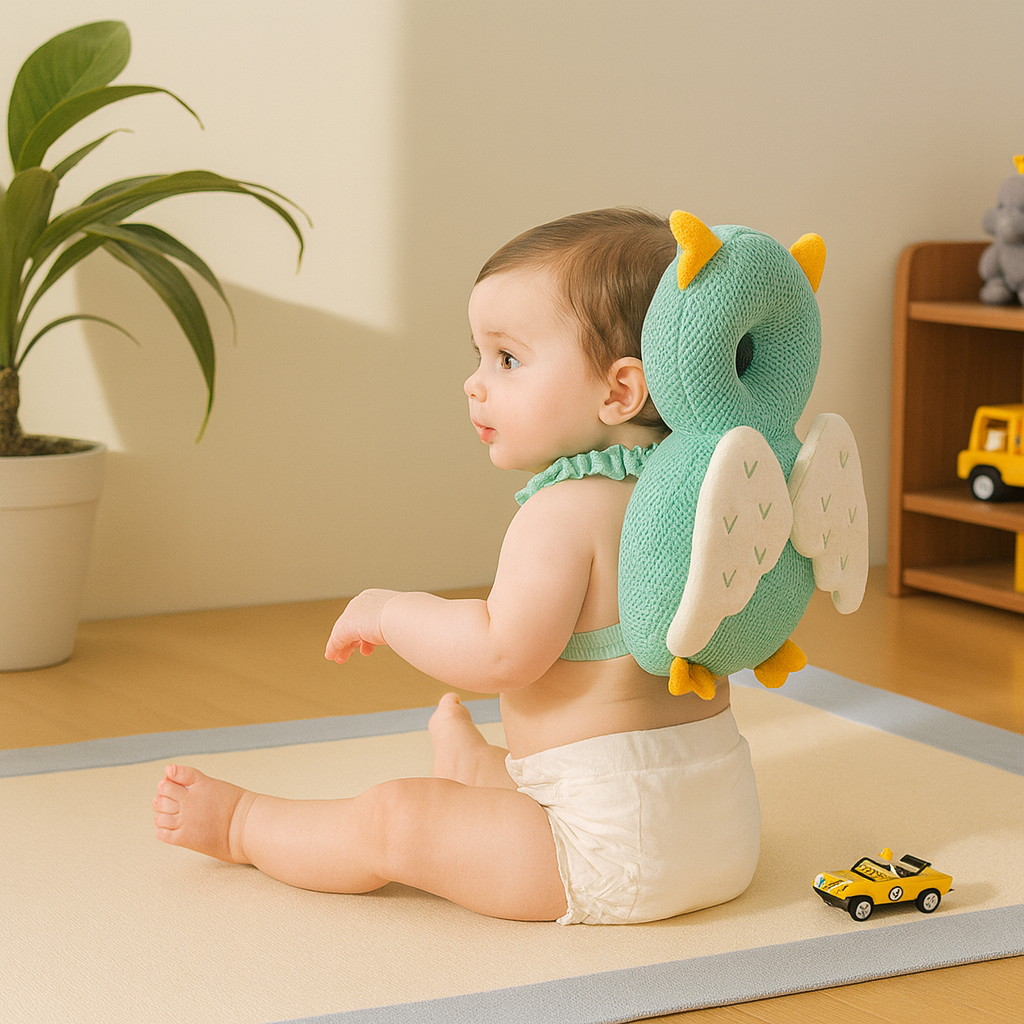Unser Baby-Kopf-Kissen ist wie ein weicher Bodyguard. Es sitzt sanft am Rücken, schützt zuverlässig den Hinterkopf und gibt dir als Elternteil endlich das Gefühl von Sicherheit. Dein Kind kann frei lernen, entdecken und spielen – während du beruhigt zusiehst.